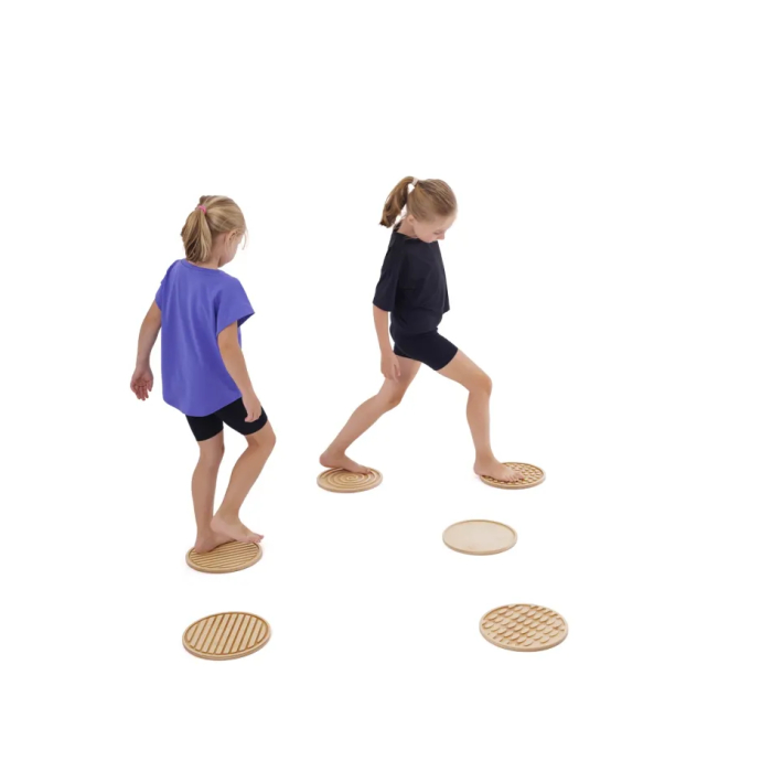 Descoperă Setul de 6 discuri senzoriale tactile, creat pentru a stimula explorarea senzorială, echilibrul și dezvoltarea motrică a copiilor. Fiecare disc este realizat din lemn rezistent și este prevăzut cu strat antiderapant, oferind siguranță în timpul mersului sau al exercițiilor de coordonare. Cu un diametru de 25 cm, discurile sunt ideale pentru activități educative, jocuri de mișcare, trasee motrice sau exerciții terapeutice.