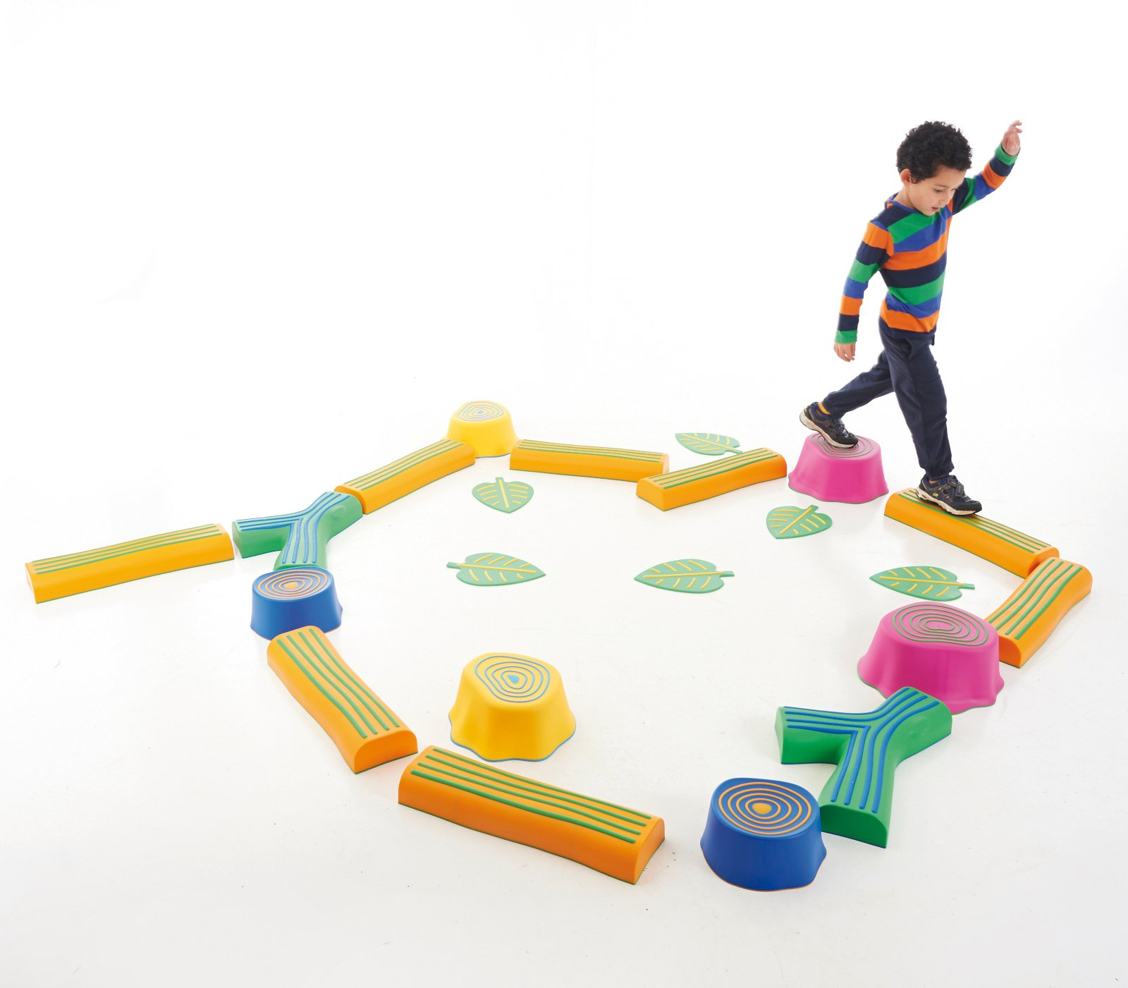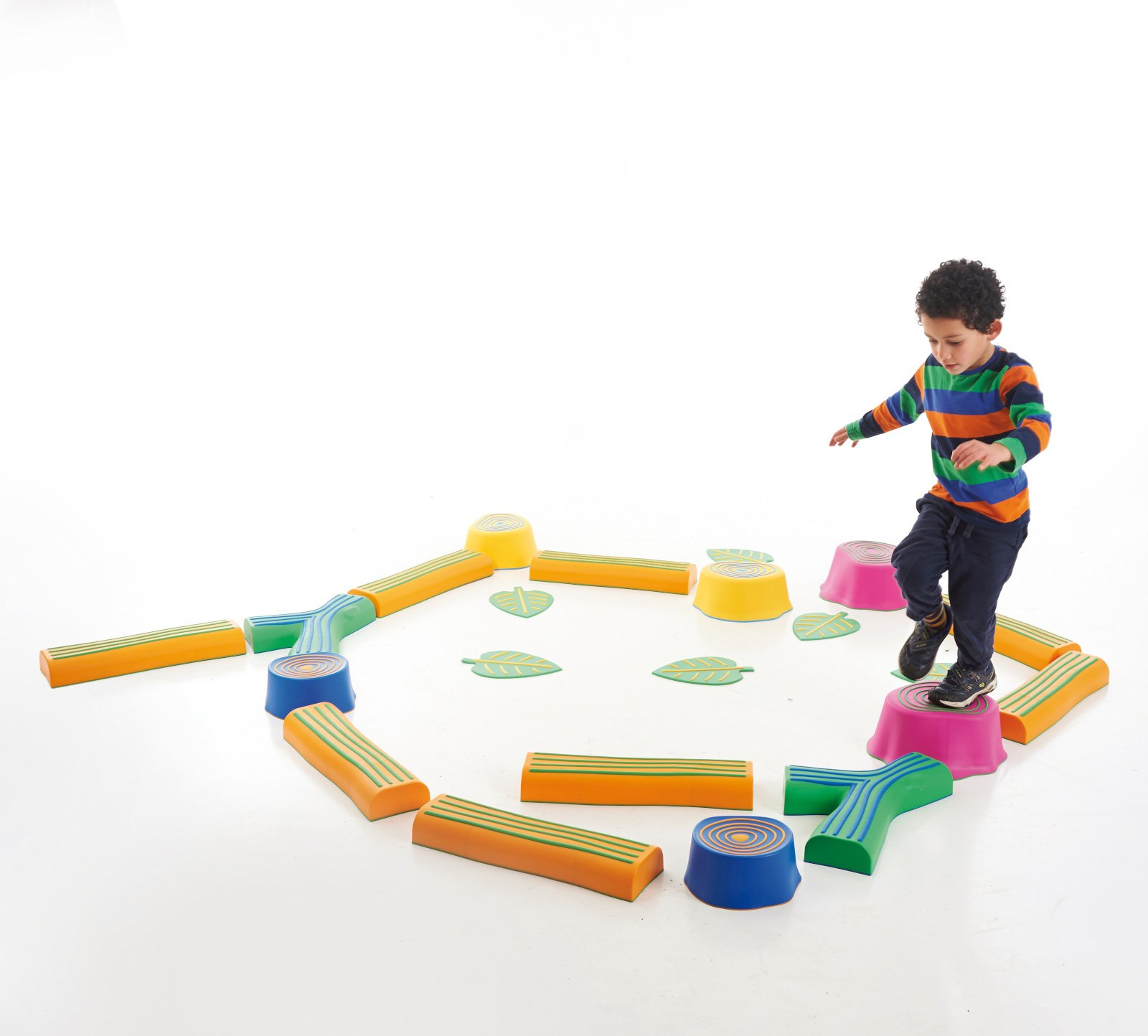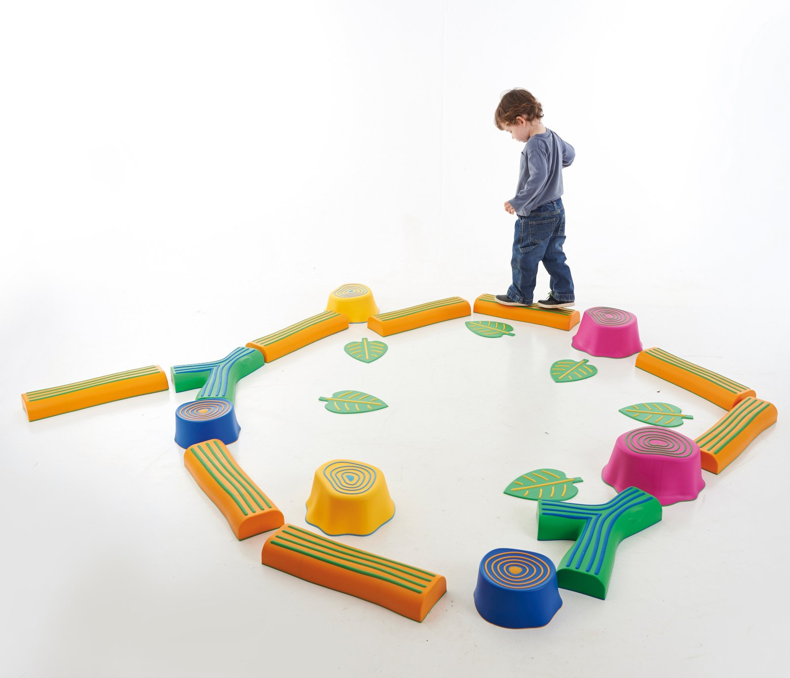 Pășește prin pădure este un set de 22 piese (cioturi, bușteni și frunze) care imită plimbarea întro pădure. Pot fi create poteci de diferite dificultăți.