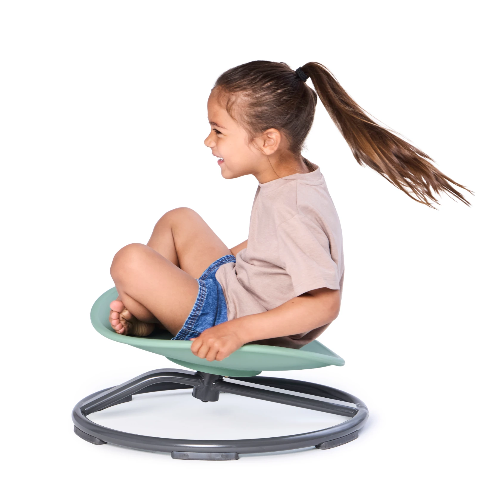 Scaunul este prevăzut cu o margine groasă, care asigură un prietenos punct de sprijin pentru copii în timpul mișcării caruselului. Simțul vestibular este stimulat în combinație cu vederea, ceea ce ajută la dezvoltarea unui echilibru mai bun. Caruselul este construit dintr-un scaun solid din plastic montat pe o bază de oțel cu o joncțiune de rotire și rulmenți de bilă, asigurând o mișcare lină și sigură. Baza solidă din metal, dotată cu un picior din cauciuc, garantează o rotire stabilă și sigură.