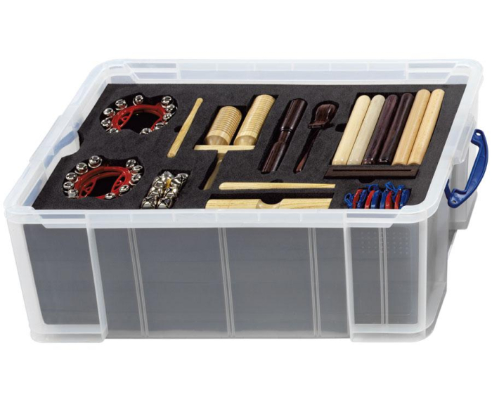Cutia mare de ritmicitate cu 38 de instrumente și inserții organizatoare – ideală pentru educație muzicală, grădinițe și școli.
