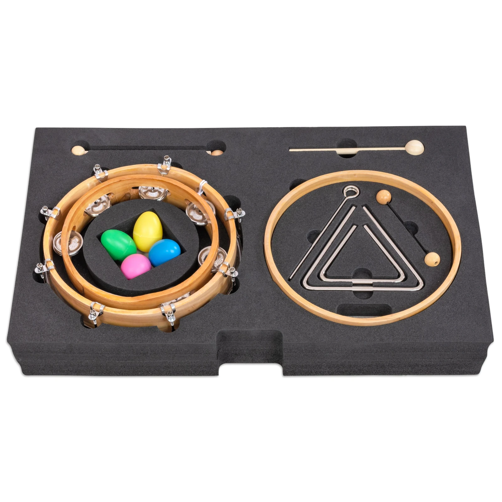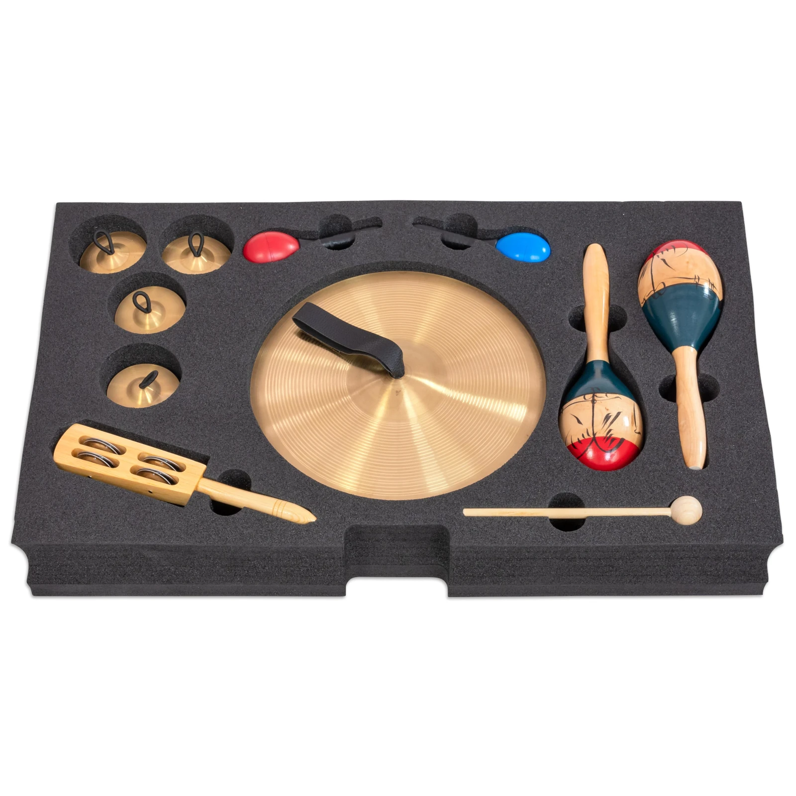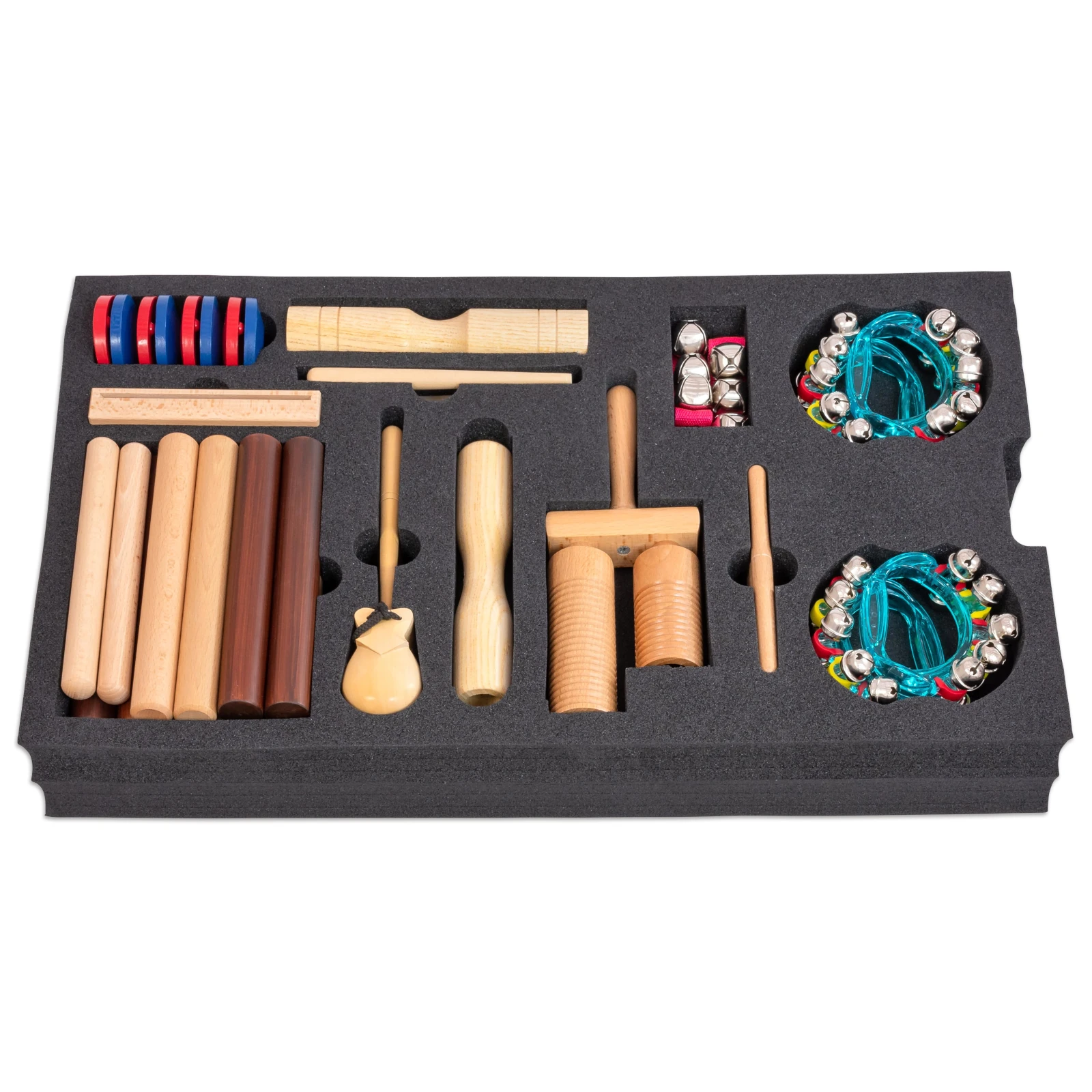 Fiecare instrument are un loc dedicat în inserțiile din spumă decupate cu precizie, ceea ce asigură ordine perfectă, identificare rapidă și protecție optimă. Educatorii pot verifica dintr-o privire dacă toate instrumentele au fost returnate, iar cutia se transportă ușor datorită celor două mânere laterale.