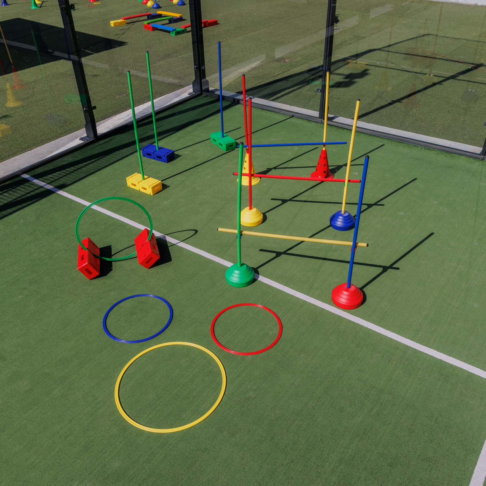 Acest kit oferă posibilități nelimitate pentru activități psihomotorii, adaptându-se perfect grupurilor de diferite vârste. Ideal pentru școli, săli de sport, cluburi sportive și medii educaționale, permite crearea de trasee cu niveluri de dificultate variate, promovând dezvoltarea abilităților motorii și jocul activ.