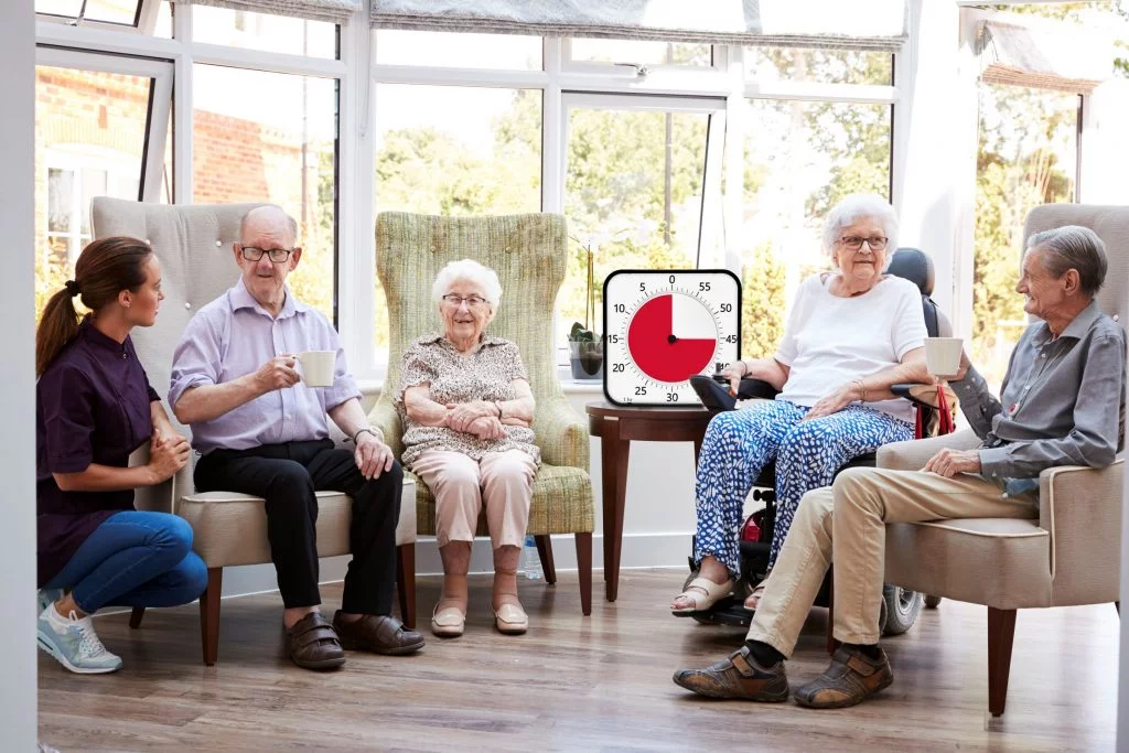 Time Timer® MAX – Cronometru Vizual Gigant (44 × 44 cm) este cel mai mare model din familia Time Timer, creat special pentru spații ample precum săli de sport, cantine, amfiteatre, săli de clasă mari sau întâlniri de echipă. Datorită dimensiunii sale impresionante și a discului roșu ușor de observat de la distanță, ajută grupurile să înțeleagă intuitiv trecerea timpului, fără sunete sau distrageri.