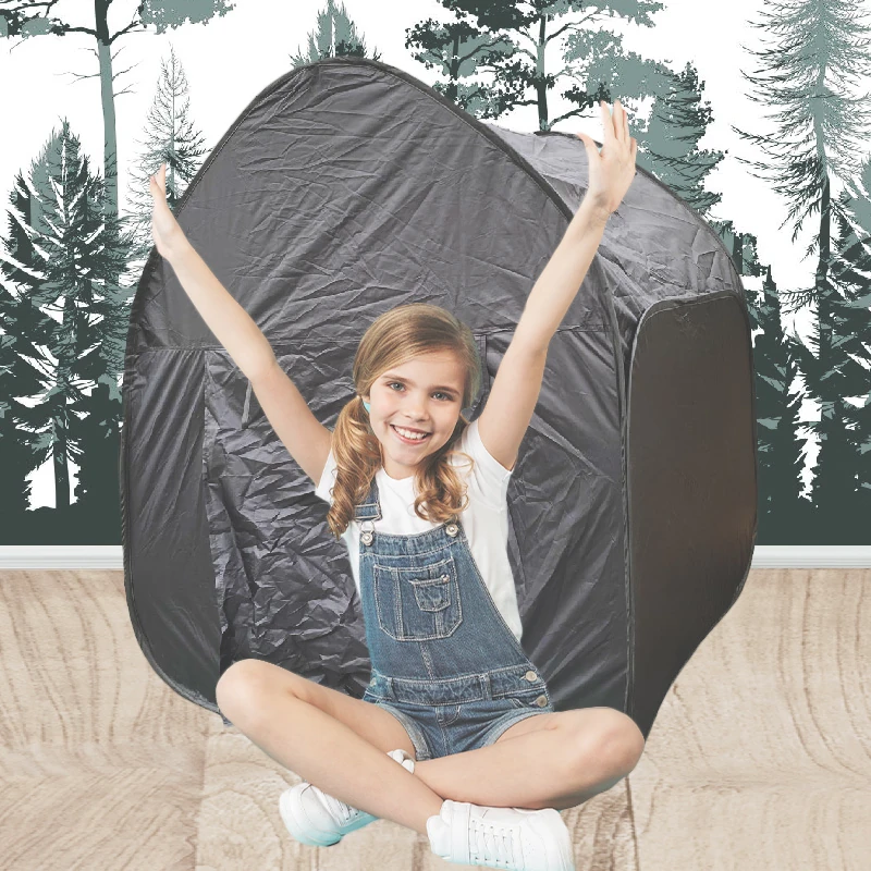 Cortul senzorial negru instant este conceput pentru a crea rapid un spațiu de joacă senzorială, o ascunzătoare liniștitoare sau un mediu ideal pentru proiecții luminoase. Se montează ușor și este livrat într-o geantă practică de transport, fiind potrivit atât pentru acasă, cât și pentru grădinițe, școli sau centre de terapie.